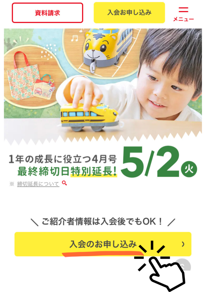 こどもちゃれんじの紹介制度を利用して入会するには、以下の手順で行います。
