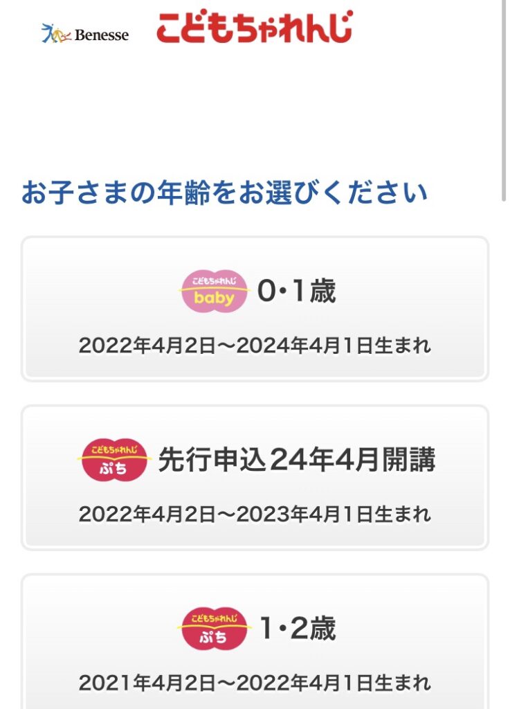 - お子さまの年齢を選択