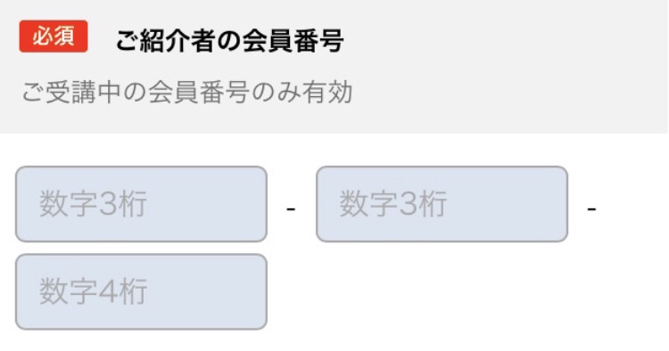 - ご紹介者の会員番号を入力