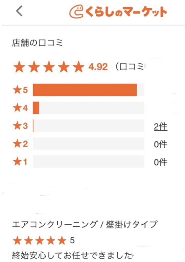 くらしのマーケットは実際に依頼した方の口コミが見られるので安心して依頼できます。