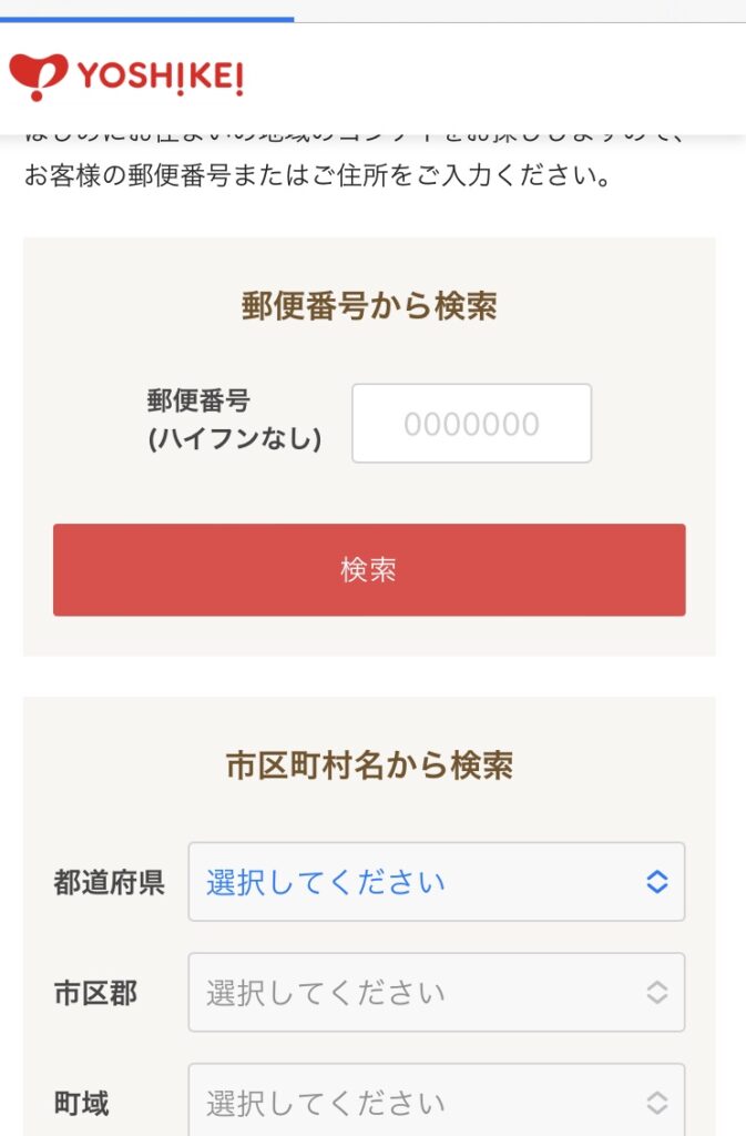 1. 郵便番号などを入力して、お住まいの担当エリアを検索
